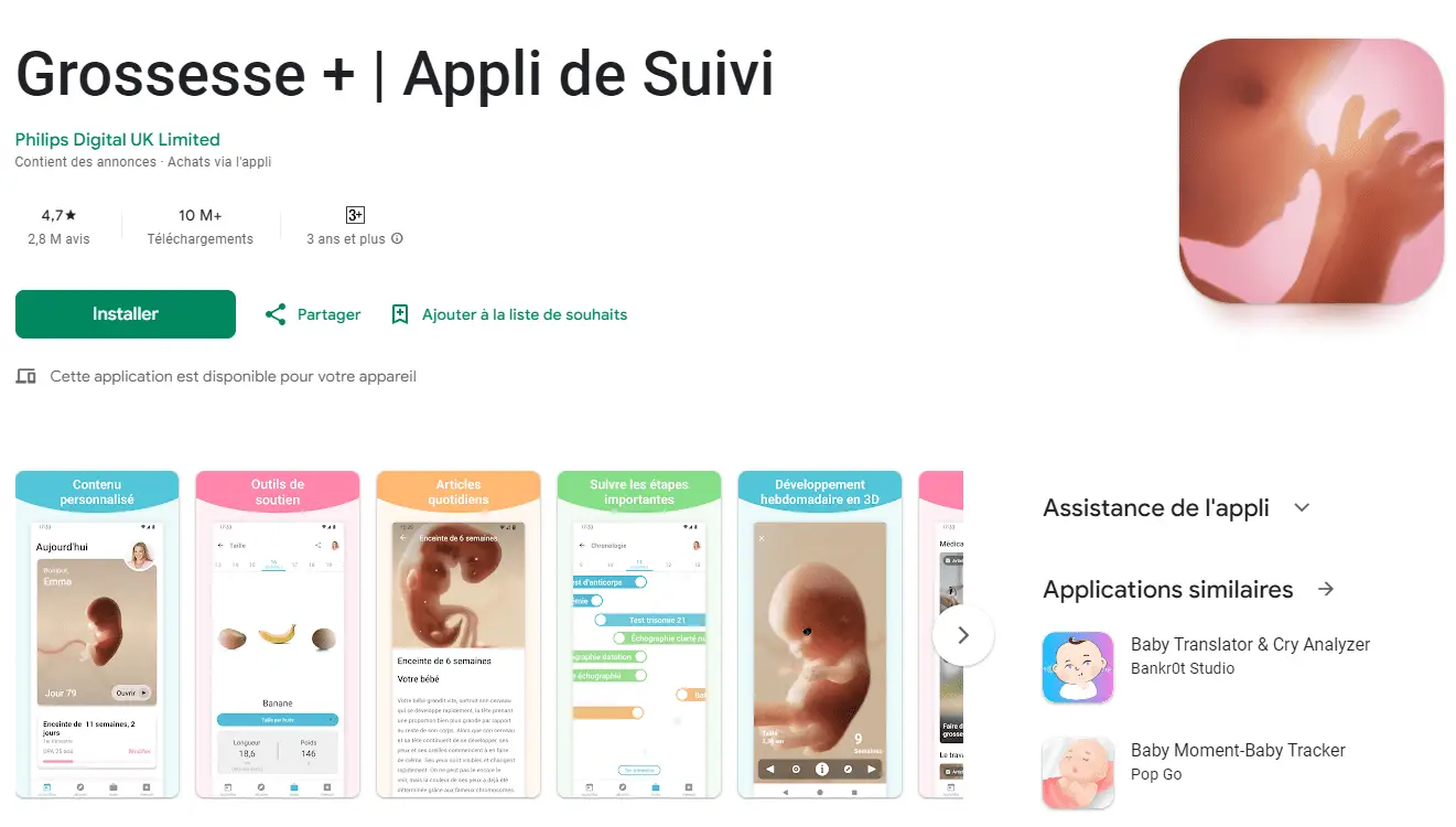 L’application Parents, issue du site éponyme, est une ressource précieuse durant la grossesse. Elle s’adresse aussi bien aux futures mamans qu’aux futurs papas, renforçant ainsi l’égalité des sexes. Parents offre des articles informatifs, des images du développement de votre bébé, et une liste pour préparer votre valise de maternité. De plus, vous pouvez bénéficier de réductions sur des produits de puériculture grâce aux codes promos disponibles sur l’application.
