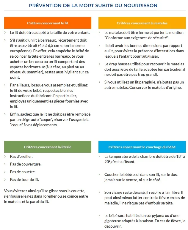 - Le lit et le matelas : Choisissez un lit à barreaux ajustable en hauteur et un matelas ferme.