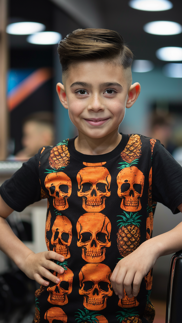 Ce look stylé et polyvalent est parfait pour les garçons qui veulent une apparence moderne mais soignée pour l’école.